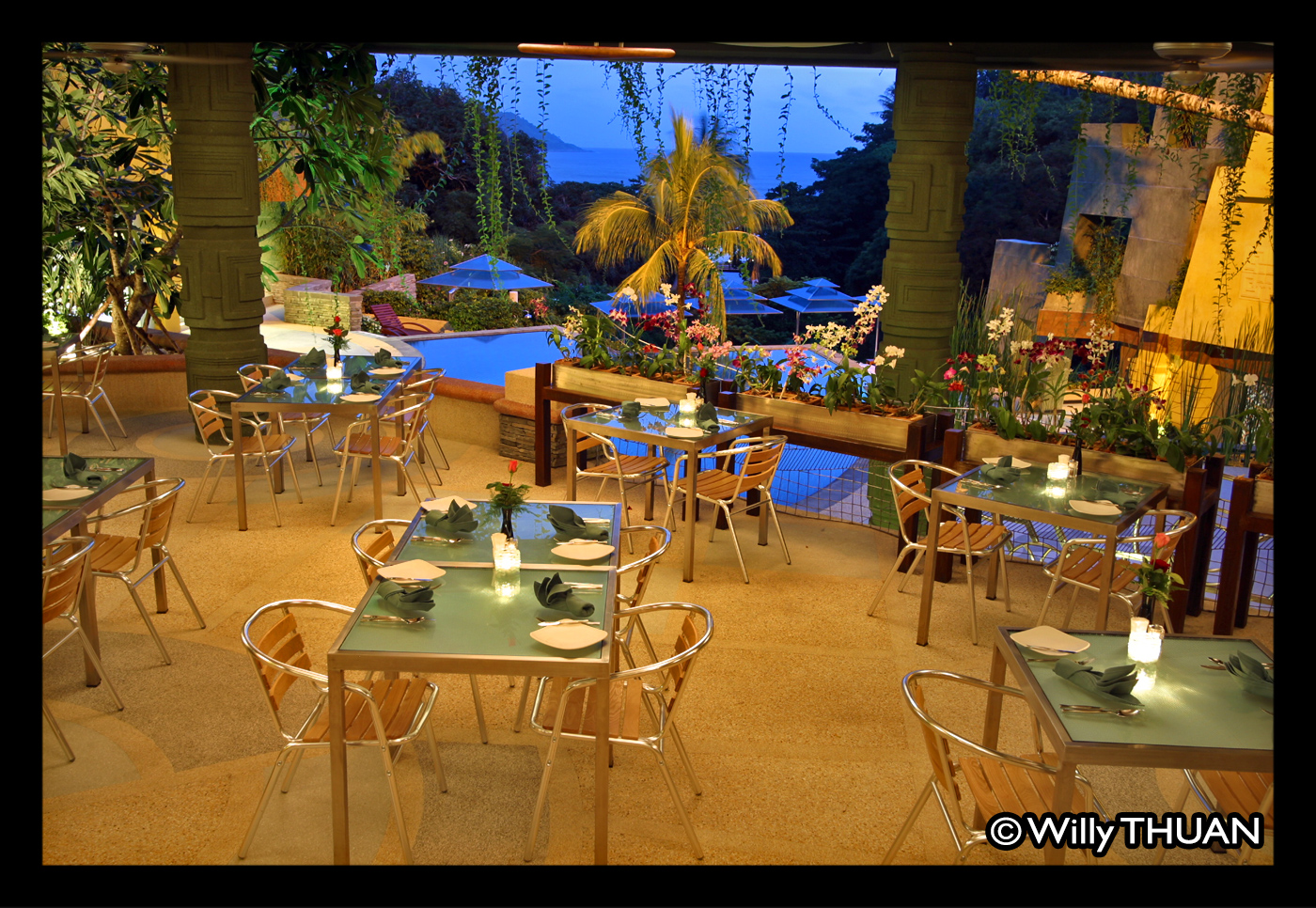 Designed with earth and nature in mind, the hotel displays ocher and green walls of Mayan inspiration, and what strikes most visitors is the intelligent way the resort is engulfed in a natural cocoon of greenery, which at certain times of the year explodes with the colours of thousands of Bougainvillaea growing on the rooftops.